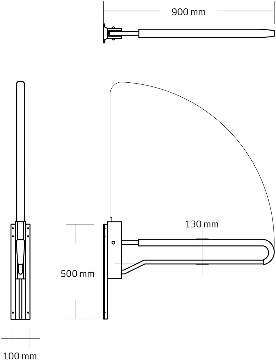 Tukikaide on koekuormitettu 150 kg alaspäin ja 60 kg sivuttaisuunnassa.