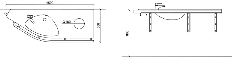 Vasenkätinen Public-allas tukikaiteella ja roska-aukolla