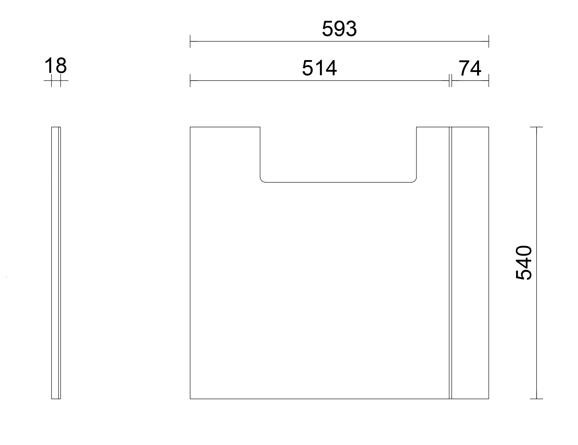 - L 600 x K 540 x S 14 mm