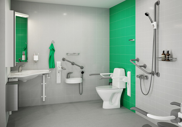 The Gaius Hospital bathroom solution is designed to meet the demands of those in critical need of support, in conjunction with supplying an ergonomic work environment for their caregivers. The solutions are based on results of a research project at Sotera, the Research Institute for Health Care Facilities operating within the Department of Architecture at Aalto University.