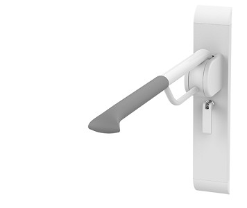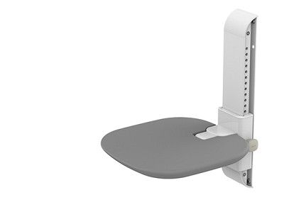 A modern, ergonomic folding shower seat, which allows for a stable yet comfortable sitting position. The tilted surface channels excess water away. Easy to fold up, set down, and lock in upright position. Customizable with on-the-spot height adjustments with range of 200 mm. Owing to the single-rail height adjustment system, the seat is easy to clean and safe to fold down. Possible to come equipped with a combined arm- and backrest.