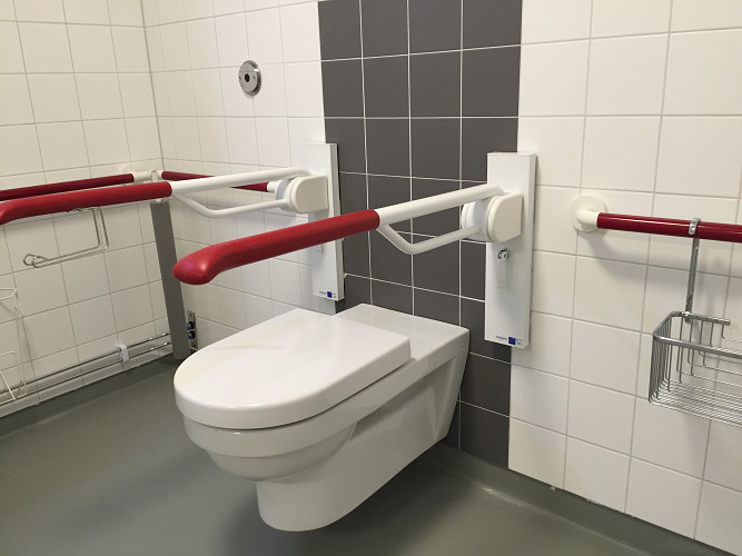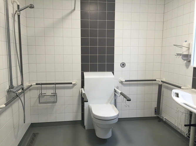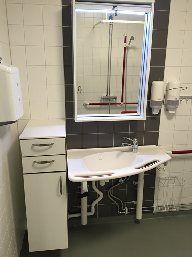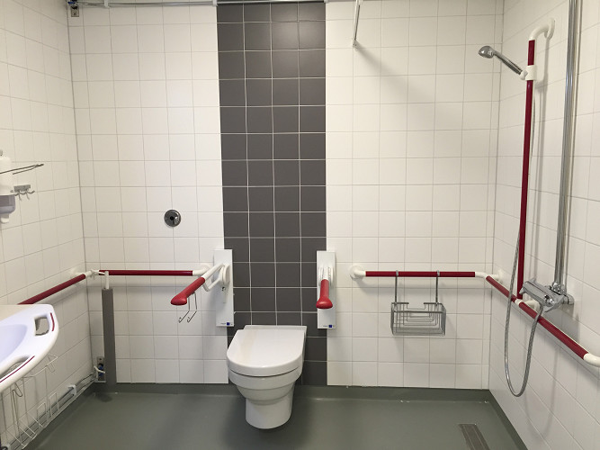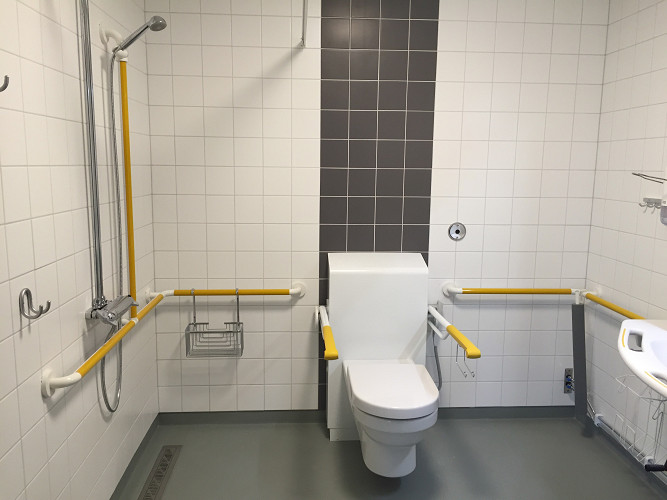 This 48-apartment residential home is situated in the beautiful city north-west of Stockholm. The bathrooms are equipped with height-adjustable washbasins and toilets, as well as other facilities. These bathrooms are the first in Sweden to offer open flushing rims in combination with height-adjustable toilets, which allow for a fitted and hygienic user experience. Contrasting colours help facilitate spatial perception for residents.
