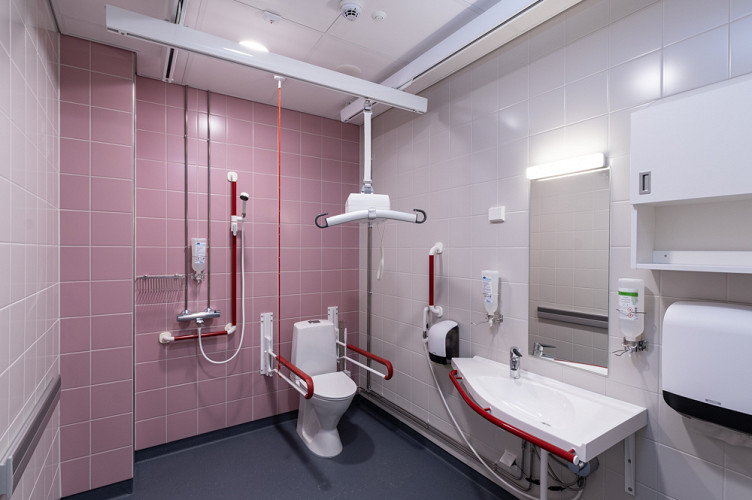 The choice of H-rails for the lift installations was deliberate, offering patients unparalleled freedom of movement. Within the bathrooms, the fixtures were meticulously designed to ensure ease of use for patients, including those utilizing lifting slings, enabling them to access the toilet, shower, and washbasin without any hindrance.