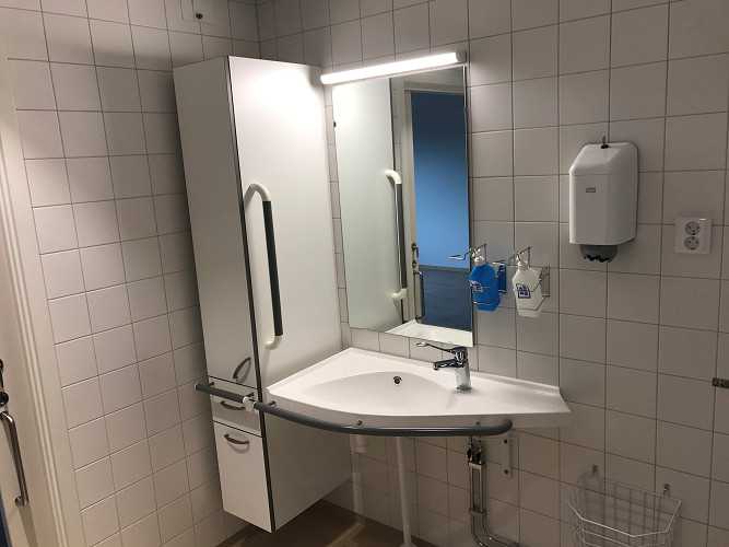 Viksjö, in the municipality of Järfalla in northern Stockholm, houses a new residential care facility since February 2017. Korpinen supplied bathroom equipment from the Gaius Original line for the 40 apartments occupied by the current tenant, Attendo. The bathrooms are fitted with tall cabinets, washbasins with support handles, and support handles for showers.
