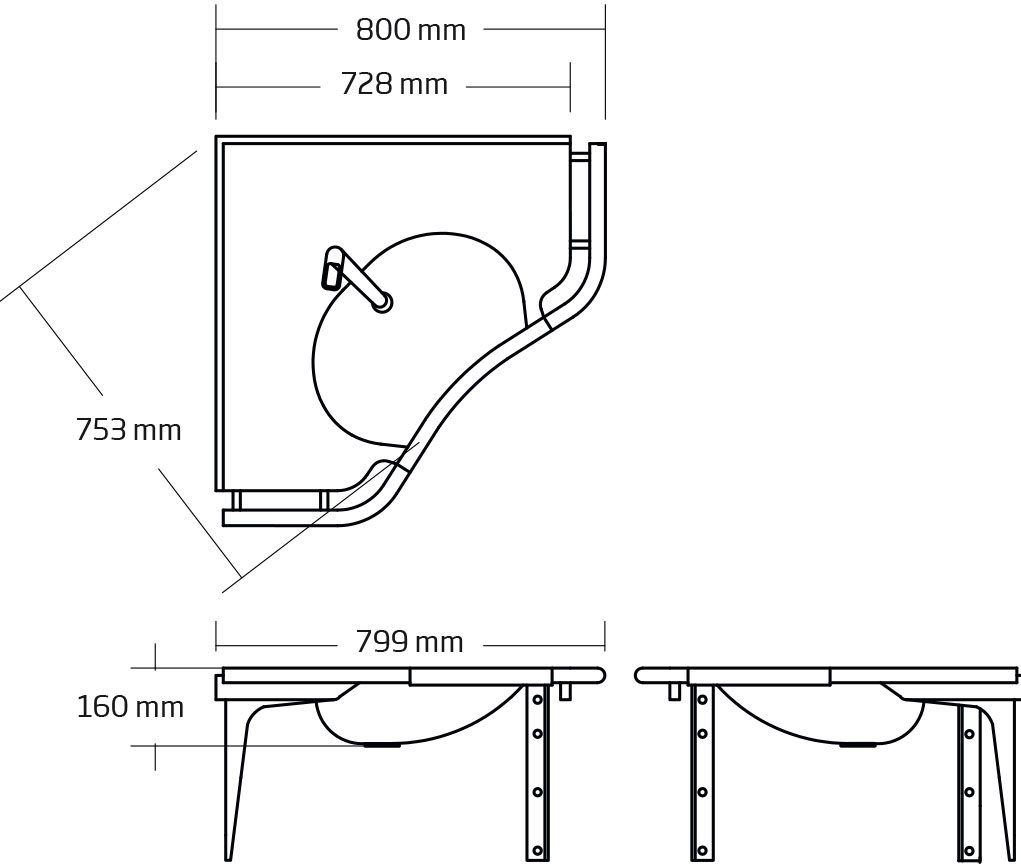 Hand rails can support up to 160 kg (Etteplan test). All basins have been CE-certified. The basin is customizable to come without overflow.