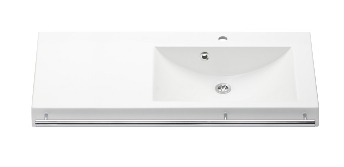 Life basins are made of durable and antimicrobial cast marble. The modern and aesthetic design makes the basin an ideal addition to bathrooms in private homes. The fixed rails support standing and ease approach, and if necessary, can also be used as towel racks. Right- and left-handed basins are available, classified by the side of the rail or location of the basin.