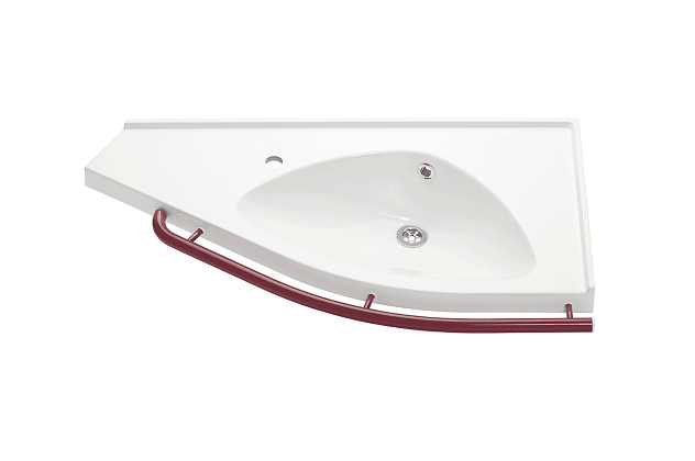 Original basins are made of a durable and antimicrobial cast marble. A Korpinen classic, the Original basin has fixed rails in front to support standing and ease approach. The angle of the front rim ensures that splashes stay inside the basin. Rails are available in different accent colours, to promote better spatial recognition. Colour options for rails: white (RAL 9016), grey (RAL 7037) and red (RAL 3003).