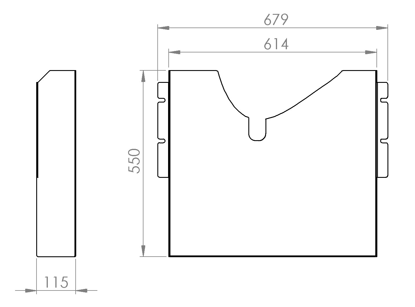 Original basin and rails sustain 230 kg of weight (VTT (RTE 3664/01)). Right- and left-handed basins are available, classified by the direction of the tapered tail. The recommended mounting height is 800 mm.