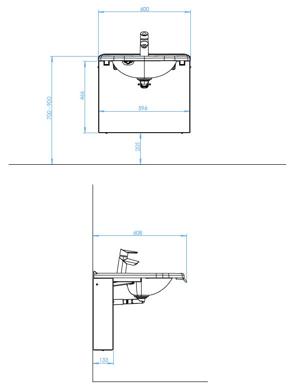 Available also a version with tap situated not the middle of the bowl. As a special order available without overflow. The recommended mounting height is 800 mm
