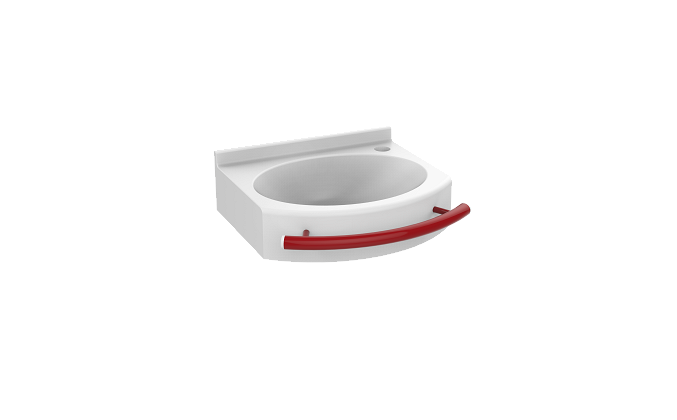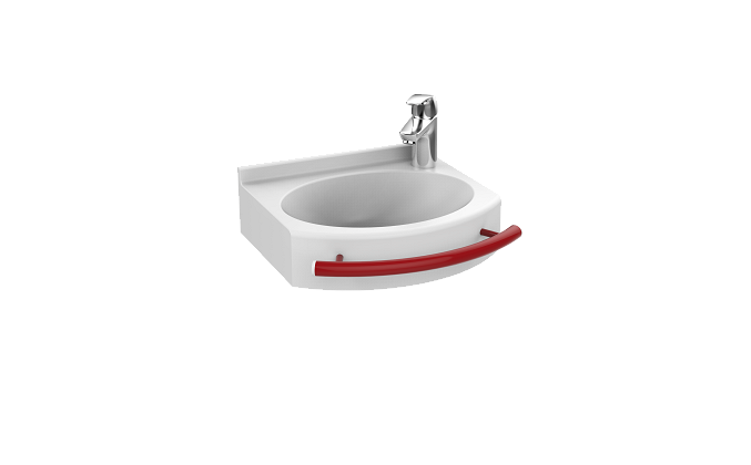 Senior basins are made of durable and antimicrobial cast marble. The classical stylish shaped Senior -basin is designed for both public places and private homes. The modern and aesthetic design makes the basin an ideal addition to bathrooms in private homes. The fixed rails support standing and ease approach, and if necessary, can also be used as towel racks. Rails are available in different accent colours, to promote better spatial recognition: white (RAL 9016), grey (RAL 7037) and red (RAL 3003). The rails sustains max. 240 kg.