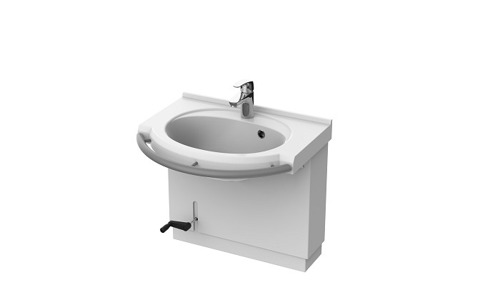 Allows smooth and easy customization of the basin height via a removable hand crank. The height adjustment range is 200 mm (recommended operating height of the basin is 700 mm when the height is adjusted to minimum).