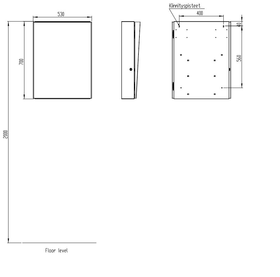 Gaius mirror cabinets have either a straight or slanted mirror door, from which also a wheelchair and children can see themselves. The mirror cabinet is lockable and the door is firmly hinged at the side. The lock can be replaced with a magnet. Mirror cabinets are available right-handed or left-handed (right-handed hinges on the right and left-handed hinges elsewhere). The moisture-resistant frame derives from the 0.7 mm electro-galvanized steel sheet with additional antimicrobial properties.