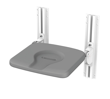 The wall-mounted seats can be customized as either fixed or height adjustable. Fixed shower seats are available with an extra support leg and hand rails with elastomeric coating to provide grip.