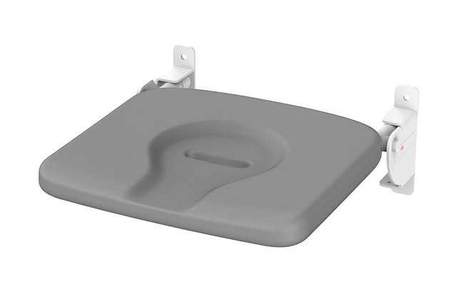 The wall-mounted seats can be customized as either fixed or height adjustable. Fixed shower seats are available with an extra support leg and hand rails with elastomeric coating to provide grip.