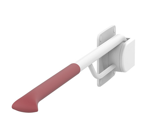 Rails are equipped with hinges that aid with folding, and keeping the rails in an upright position. These modern support rails have a white antimicrobial frame with an elastomeric gripping surface. The rail diameter is 27 mm. Additional hardware is painted steel, with plastic antimicrobial cover plates.