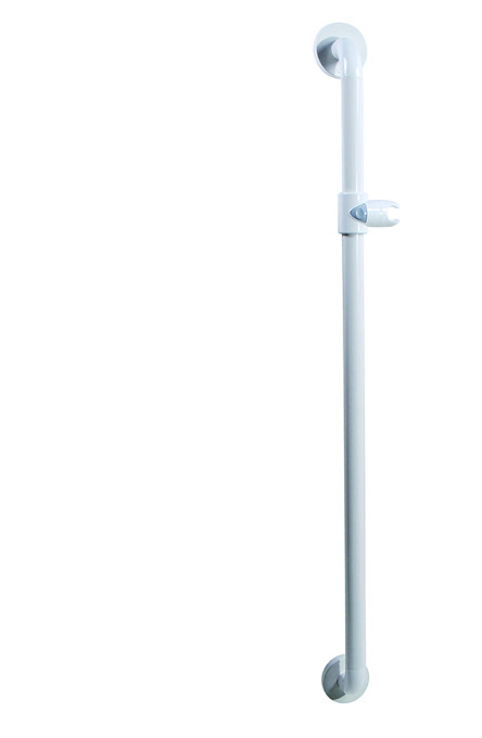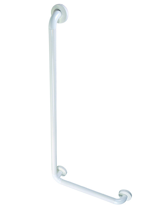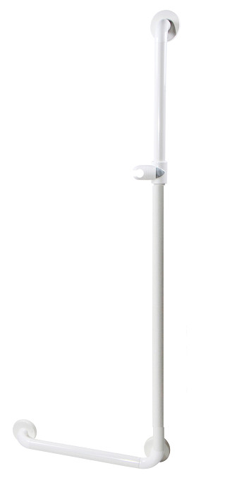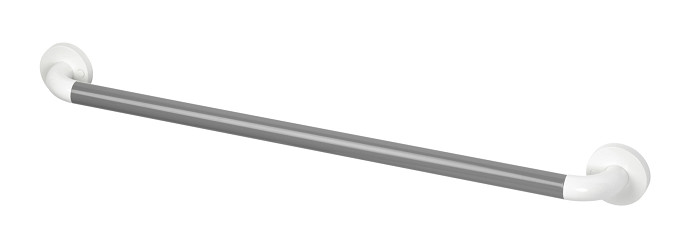 The rail frame is aluminum, with ridged nylon covering the back section. The ridges allow for a firm grip even when wet, thus making the Animo hand rails ideal for bathroom use.