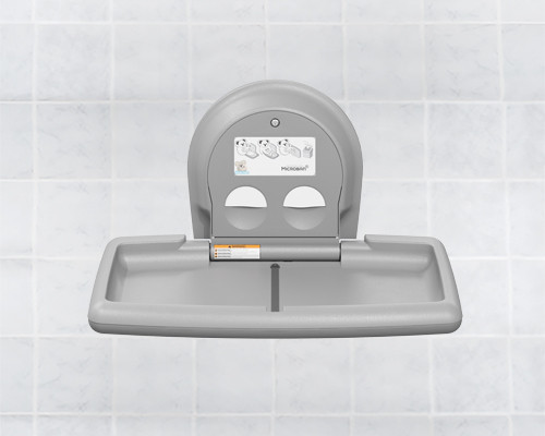 The station is made of polyethylene plastic which rejects odours and bacteria. The closed structure of the baby changing station also helps keep it clean.