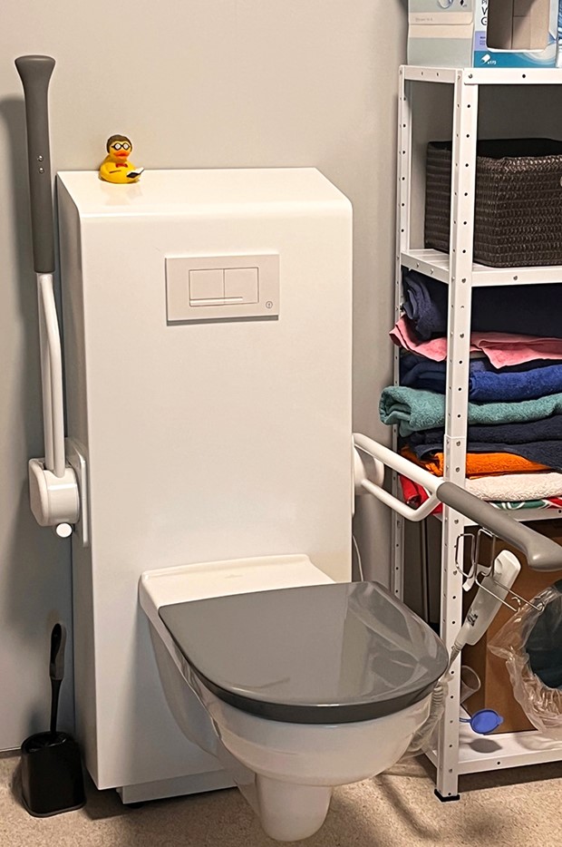 Elvelund palvelukodin asukas kommentoi, että korkeussäädettävän wc-istuimen käyttö tuntuu turvalliselta. Tukikaiteiden välissä on runsaasti tilaa, mitä kaikissa siirrettävissä apuvälineissä ei ole. Kulkeminen pesualtaalle on vaivatonta nostettavien tukikaiteiden ansiosta. Asukkaan mielestä on kätevää, että pesualtaan ja wc-istuimen korkeutta on mahdollista säätää - erityisesti silloin, kun hänellä on kipuja käsissä ja hartioissa.
