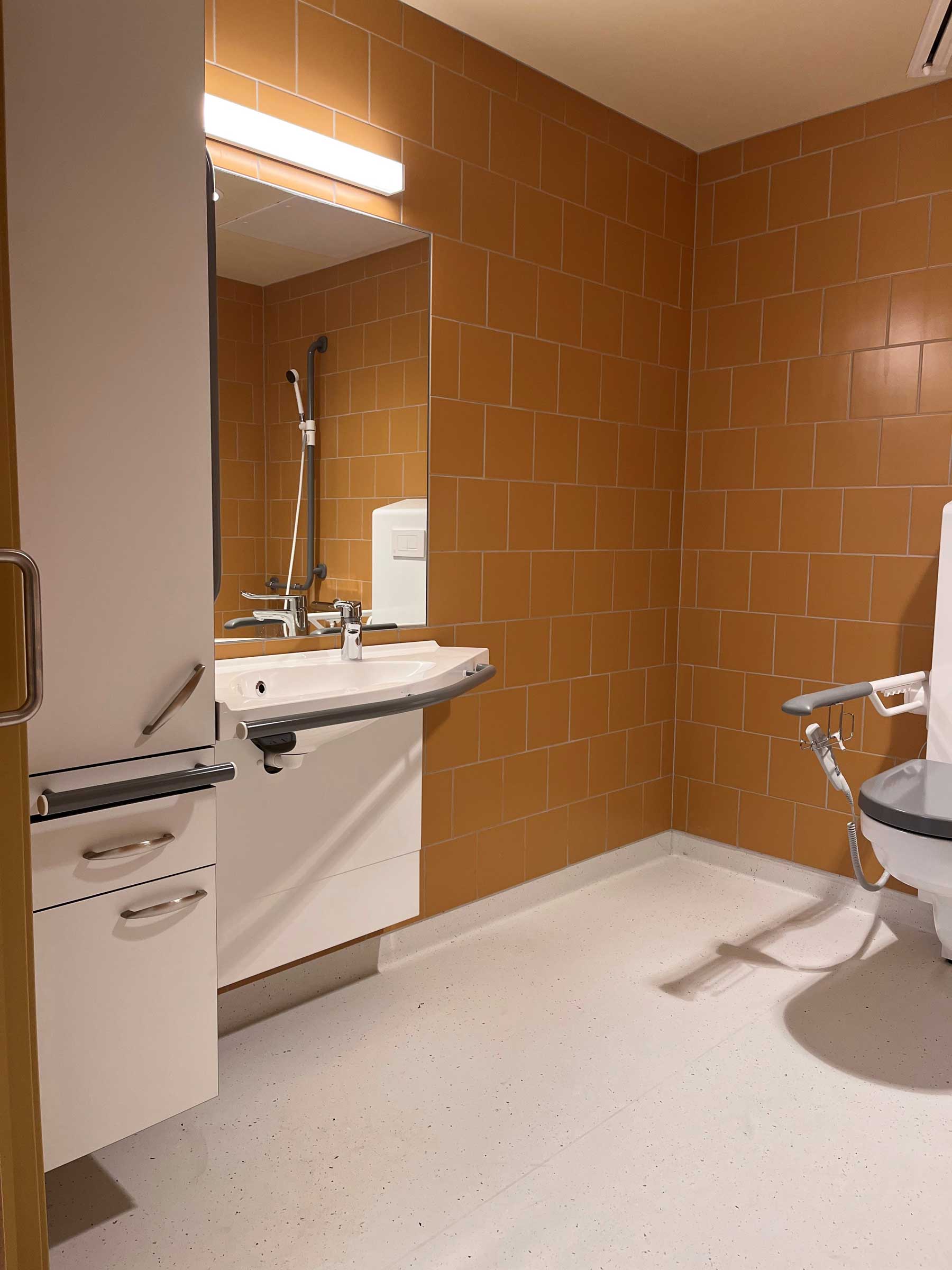 Nidarvoll-projektin ratkaisu koostuu sähköisesti säädettävästä pesualtaasta yhdistetyllä kaapistoratkaisulla, peilistä ja valosta. Lisäksi on toimitettu sähköisesti säädettävä wc, seinään kiinnitettävät tukikahvat ja suihkuratkaisu. Kaikki pesuallas-hanat ja suihkutukit on myös toimitettu Heprolta yhdessä kaiken tarvittavan lisävarusteen kanssa.