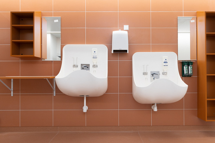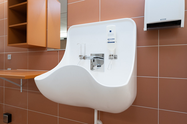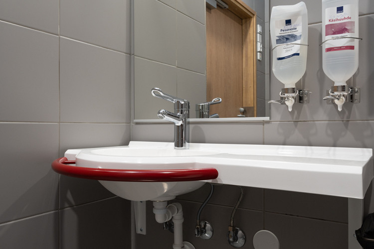 Kohteeseen valittiin käyttäjälähtöisesti joukko erilaisia altaita, kuten komposiittimateriaalista valmistetut tyylikkäät Surgery-käsienpesualtaat, joiden suunnittelussa on huomioitu erityisen korkean hygieniatason vaatimukset. Lisäksi käyttöön valikoitui Senior-, Mini-, ja Original-altaat sekä muita esteettömän kylpyhuoneen varusteita.