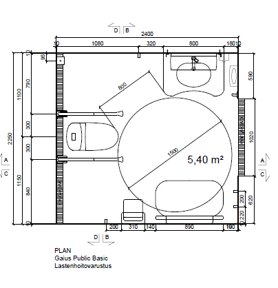 Mallipohjat ovat uuden asetuksen mukaisia ja soveltuvat julkisten tilojen inva-WC- tai saniteettitiloihin.