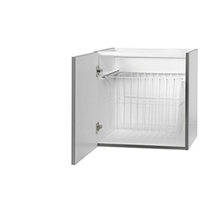 Alakaapit ovat seinäkiinnitteisiä, joten lattian puhdistus ja kuivaus on helppoa. Kaappien runko on valmistettu kosteudenkestävästä 16 mm melamiinipintaisesta levystä. Rungossa on harmaat reunanauhat. Ovi on valkoista laminaattipintaista kalustelevyä harmailla reunanauhoilla. Oven kätisyys on vaihdettavissa.