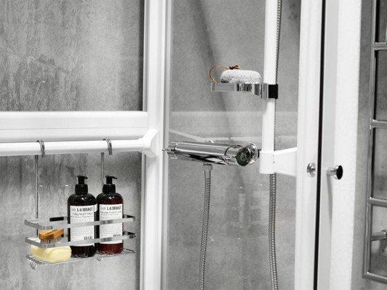 Suihkukaappiin saa lisävarusteina luiskan, roiskesuojasuihkuverhon tai hanan. Suihkukaappia on saatavilla kirkkaalla tai valkoisella lasilla.