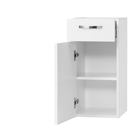 Senior-alakaapin runko on valmistettu valkoisesta kosteudenkestävästä 16 mm melamiinipinnoitetusta levystä. Etusarjat ovat korkeapainelaminaattia. Reunanauhat ovat valkoiset.