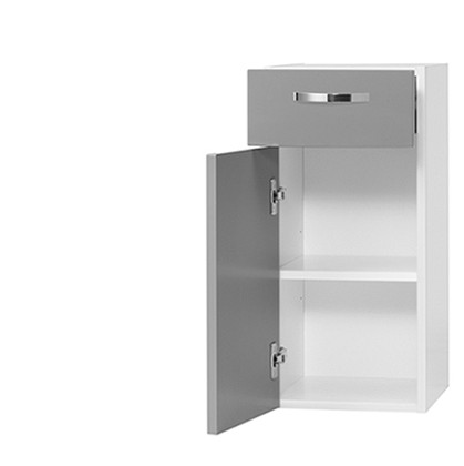 Senior-alakaapin runko on valmistettu valkoisesta kosteudenkestävästä 16 mm melamiinipinnoitetusta levystä. Ovet harmaaksi maalattua laminaattia.