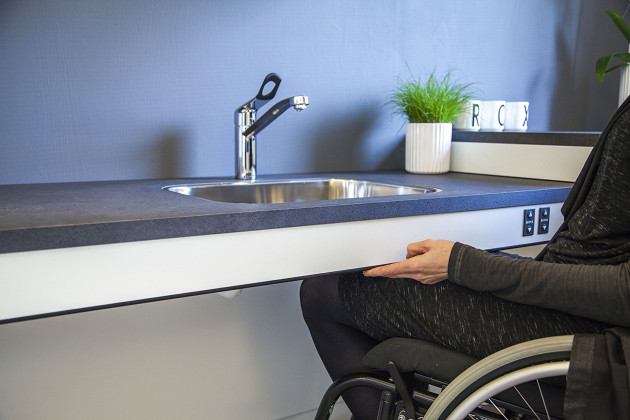 Säädettävät työtasot on suunniteltu niin, että istuma-asennossa oleville käyttäjille jää enemmän jalkatilaa. Näin keittiössä liikkuminen onnistuu esteittä.