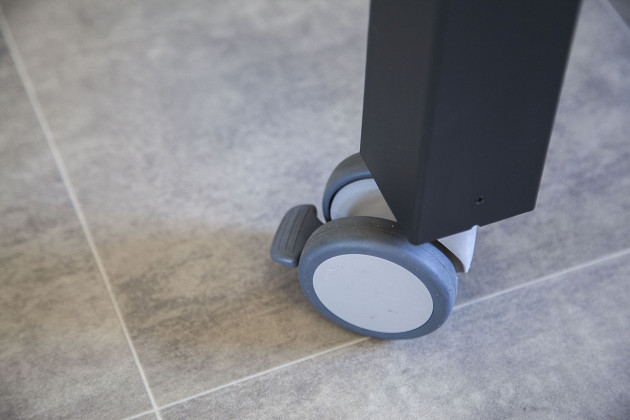 Lisävarusteina toimitettavien, jarrulla varustettujen rullapyörien ansiosta pöytää voi siirtää helposti.