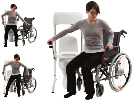 Istuin lukitaan suoraan asentoon ja nostetaan tai lasketaan sellaiselle korkeudelle, että siirtyminen pyörätuolista onnistuu helposti, turvallisesti ja miellyttävästi.