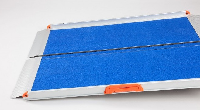 Salkkuramppi sopii loistavasti muutaman portaan ylittämiseen. Ramppi sopii hyvin pyörätuolin, lastenrattaiden sekä sähkökäyttöisten kulkuneuvojen avuksi. Salkkuramppi taittuu keskeltä ja vie säilytyksessä vain vähän tilaa. Se on helppo asentaa paikalleen ja ottaa pois. Karhennettu sininen pinta varmistaa turvallisen kulkemisen.