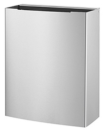 Seinäkiinnitteisiä roska-astioita on saatavilla eri muotoisina ja kokoisina. Väreinä rosteri, valkoinen ja musta.