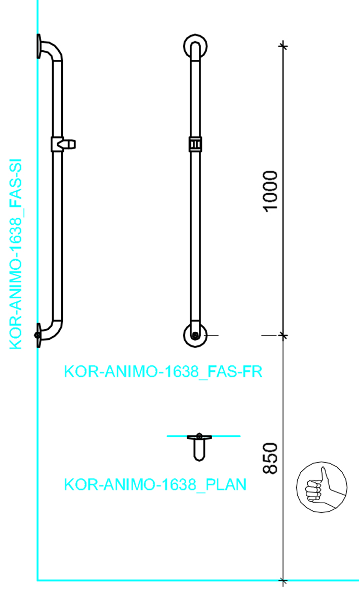 Animo-tukikahvan profiiliputki on alumiinia, halkasija 32 mm ja putken takaosa uritettu nylonia. Uritetusta nylonista saa pitävän otteen märkänäkin. Tukikahvat toimivat myös pyyhetelineenä.